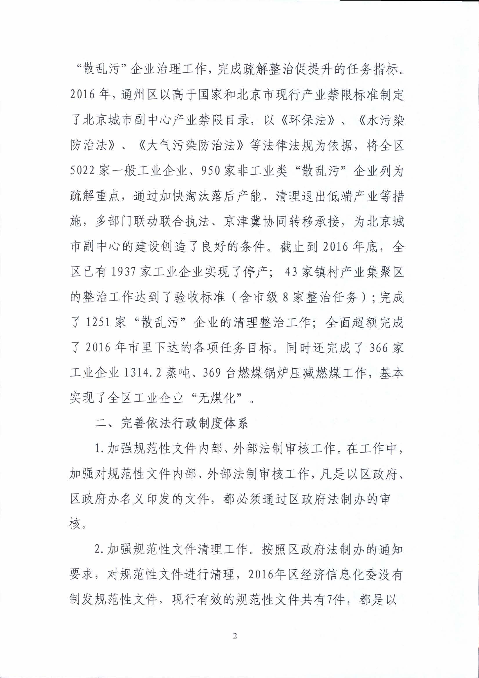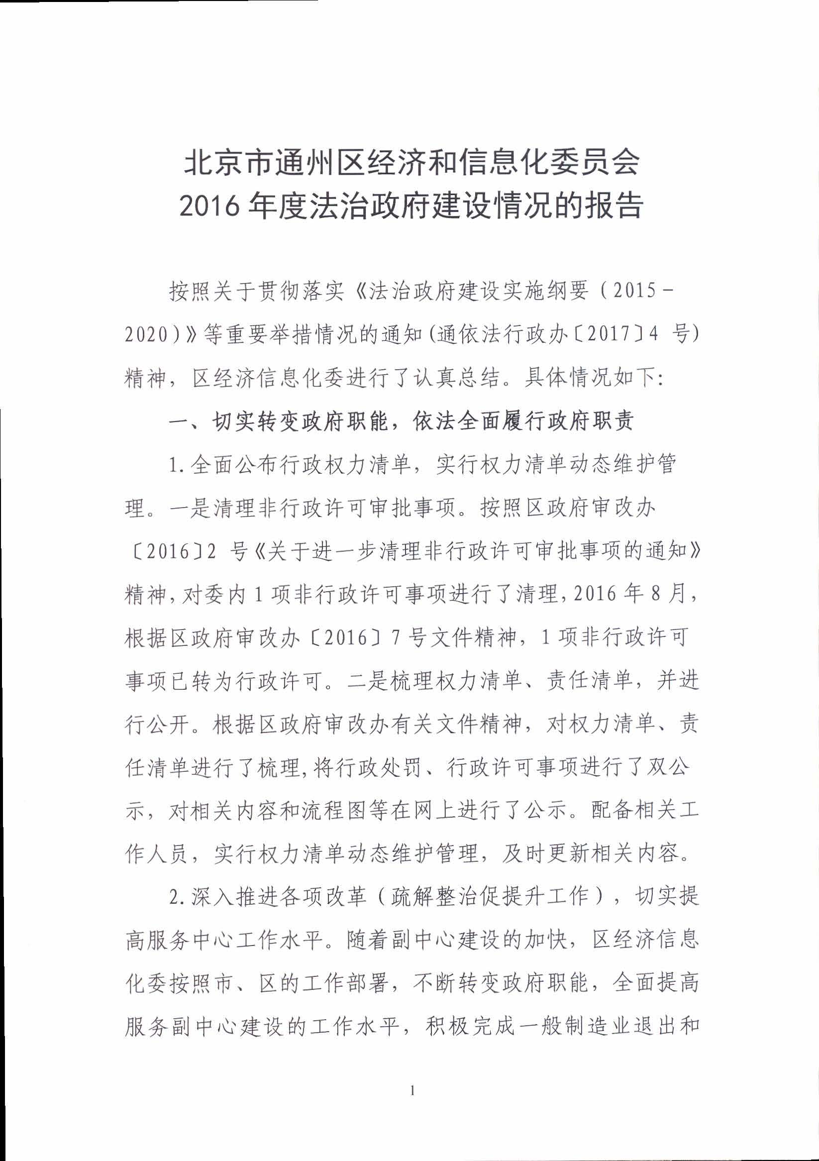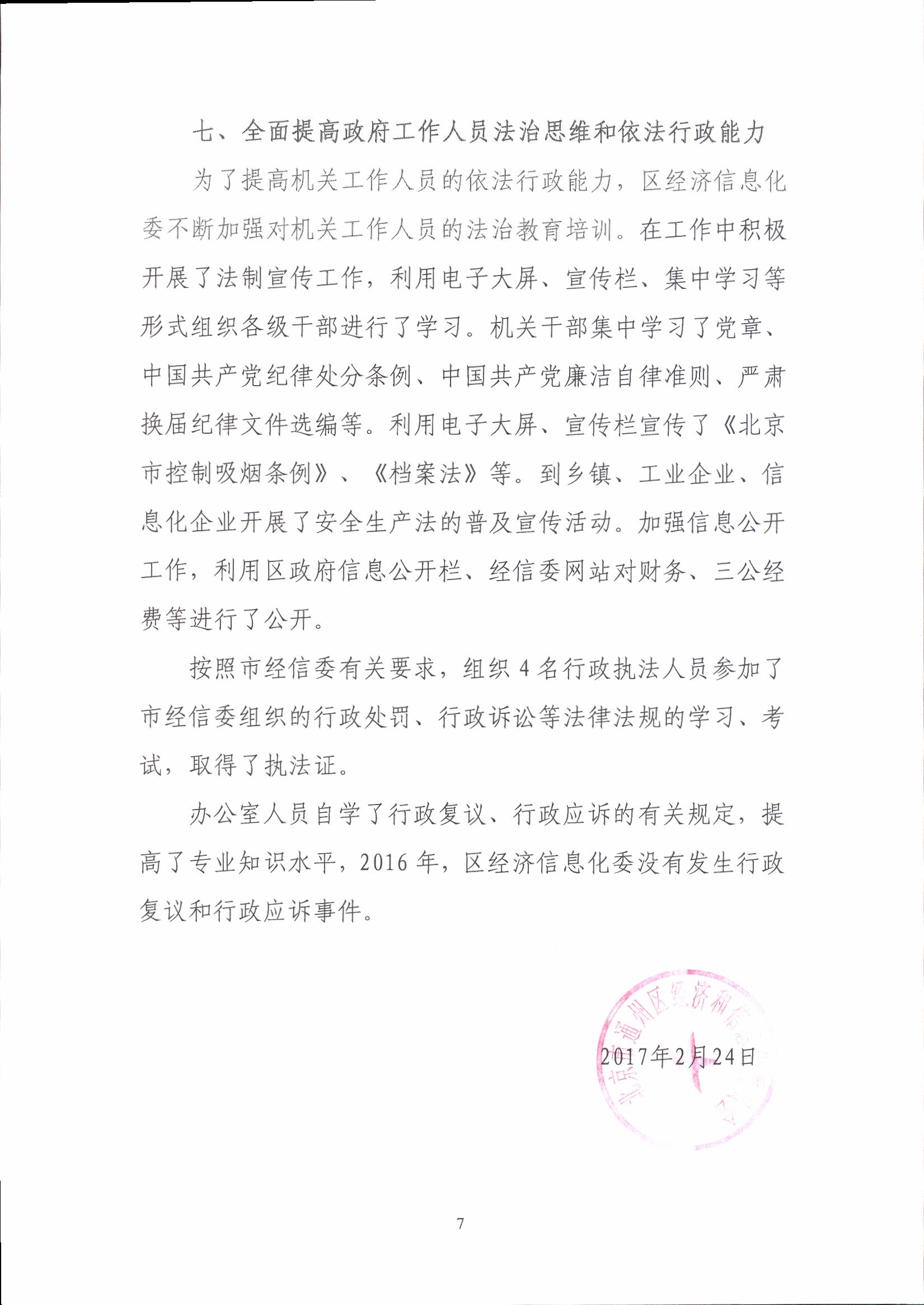 区经信委2016年法治政府建设情况报告
